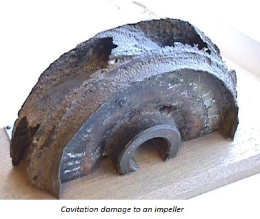 If the pressure of the fluid at any point in the pump is lower than its vapour pressure, it will literally boil, forming vapour bubbles within the pump. The formation of bubbles leads to a loss in throughput and increased vibration and noise but the big danger is when the bubbles pass on into a section of the pump at higher pressure. The vapour condenses and the bubbles implode, releasing, locally, huge amounts of energy. This can be very damaging, causing severe erosion of the pump’s components.